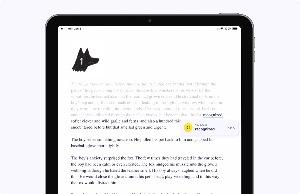 Word tracking: Every word read is tracked, allowing kids, parents, and teachers to monitor progress.