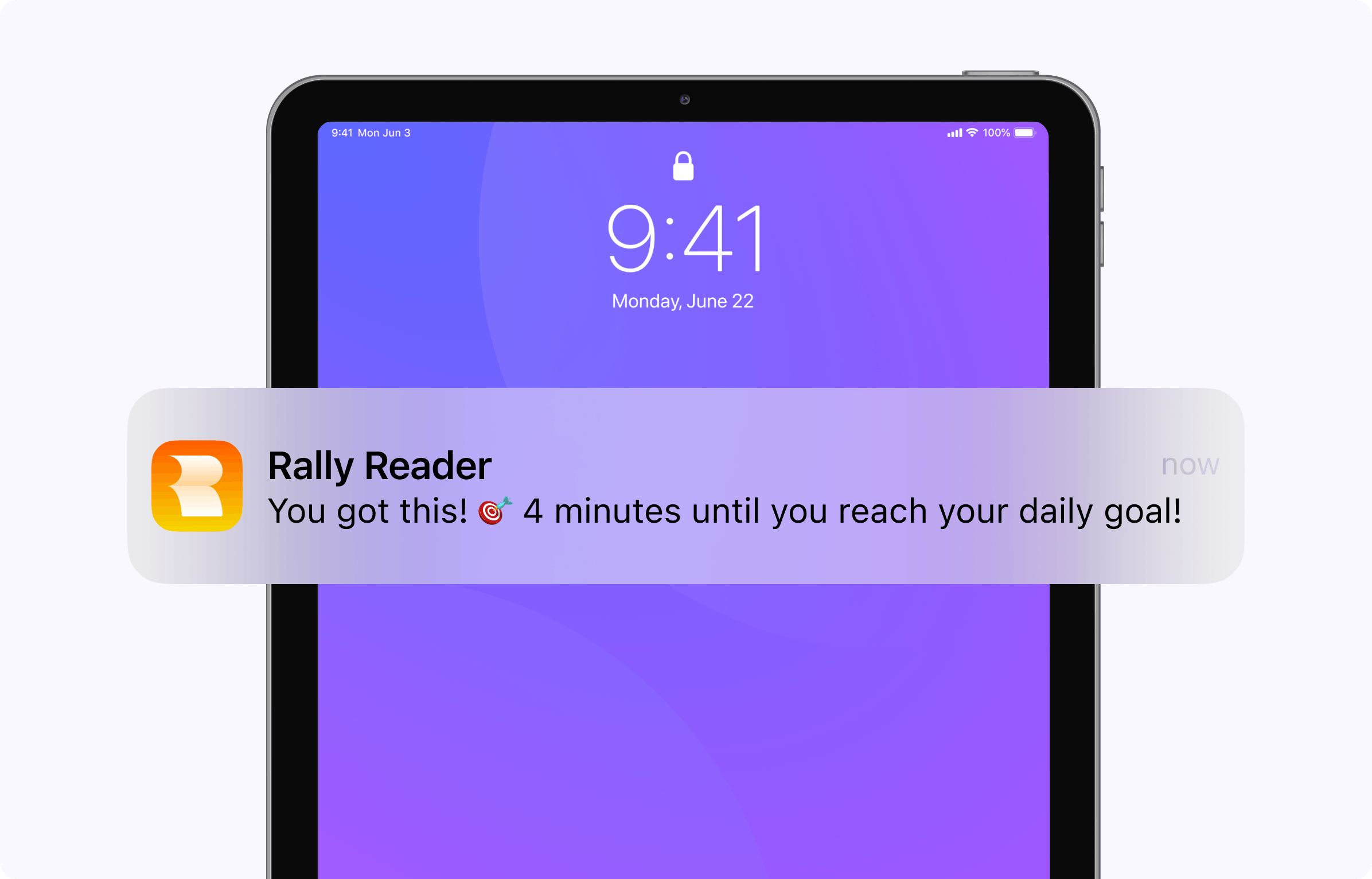 Encouraging prompts: Motivational messages within the Rally Reader app inspire kids to keep reading.